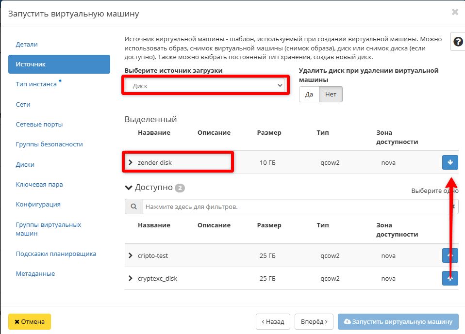 2. Создаем виртуалку. Заполняем название и добавляем созданный диск.