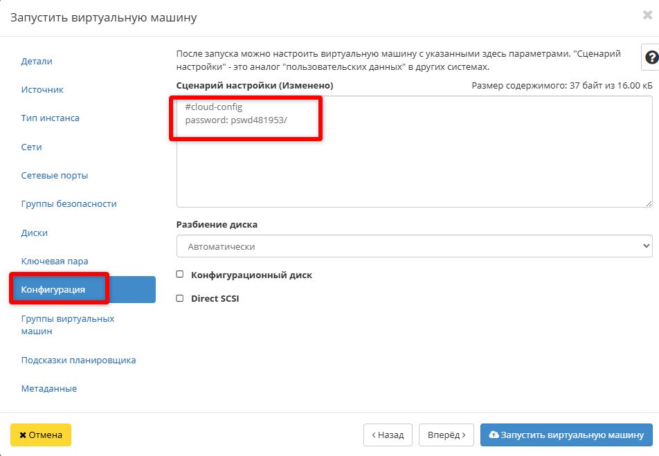 Ubuntu - ubuntu) - VPN - доступ не предоставляется Пароль Вы указываете самостоятельно при создании ВМ. В пункте "Конфигурация" необходимо указать следующее: