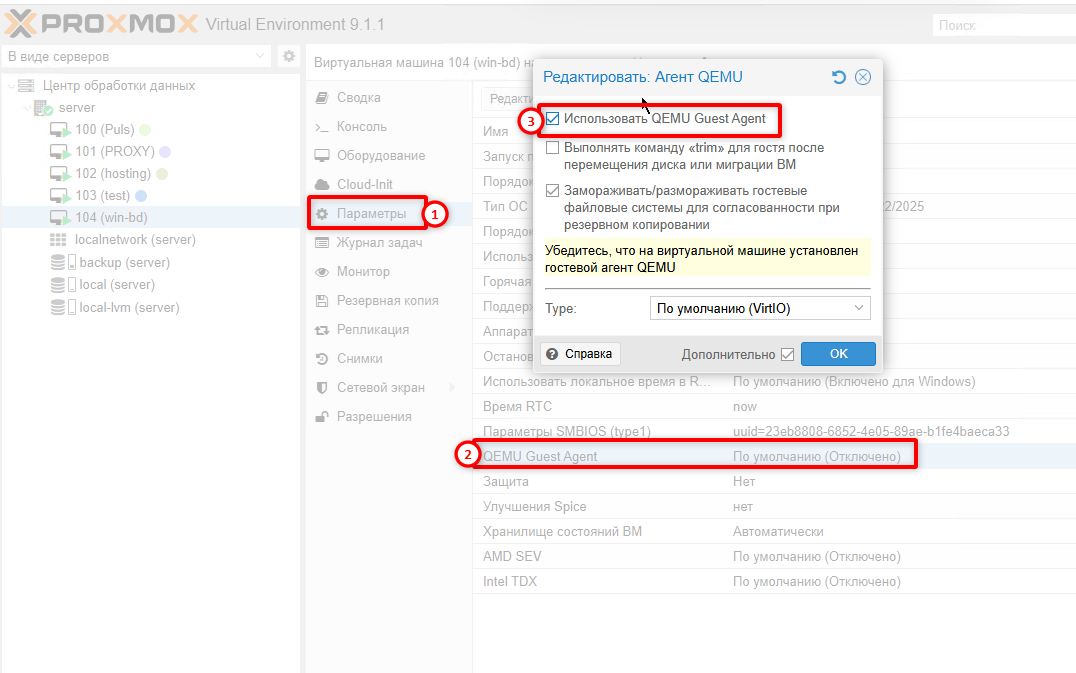 Монтируем образ через виртуальный CD/DVD привод в Proxmox.